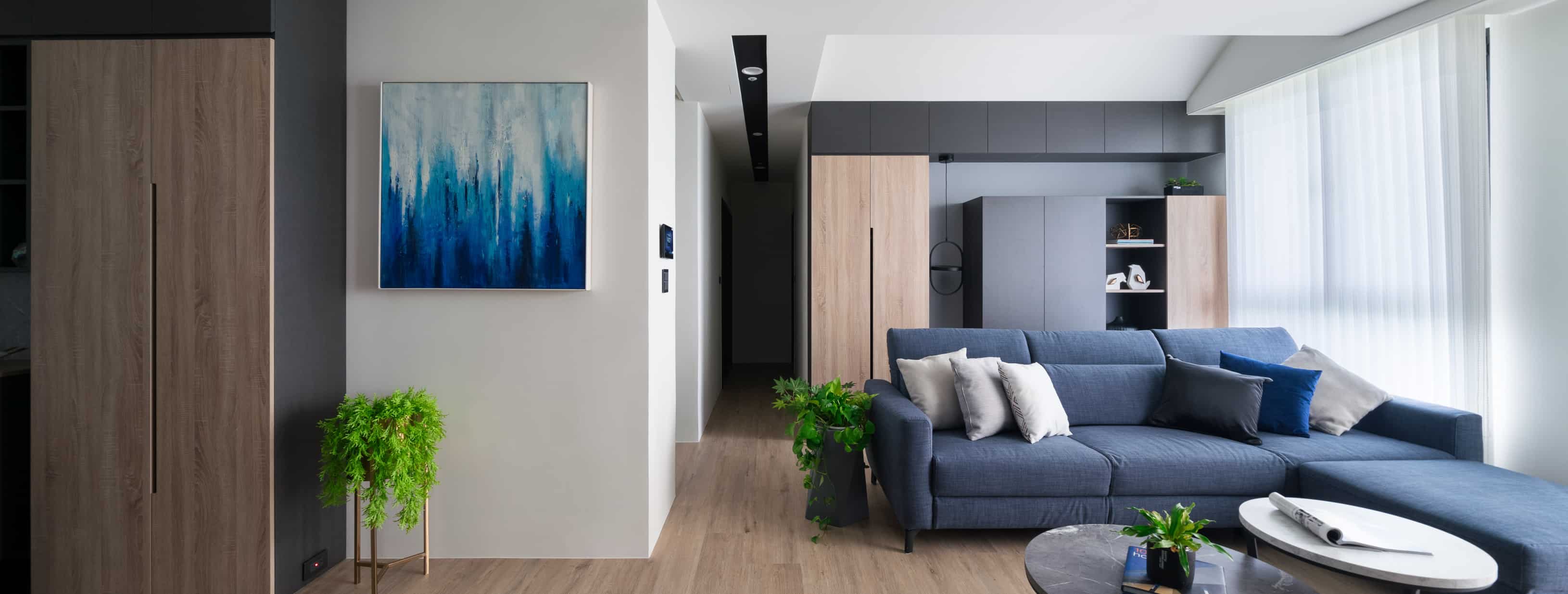 心澄23坪 | 3房2廳1衛 | 現代風在專屬的空間擁有自己的時光,容納娛樂、休憩和更衣於一個空間,在忙碌過後也能享受寧靜。本文重點摘要 ToggleDesign Features設計巧思Related Project圓曲童心現代都會有點率性又有點溫暖LUXURYDesign Features設計巧思主臥的推拉門式衣櫃,具有隔間與電視牆功能,靈活利用每個空間。利用畸零空間改造成收納櫃,除了擺放餐具更能用作展示空間。玄關地板配合牆角延伸線條,修飾入口處格局。客廳用黑色搭配淺木地板,加上藍色傢俱點綴,完善整體格調。 Related Project圓曲童心28坪 | 3房2廳2衛 | 北歐風 | 小孩房、衣帽間、多功能室現代都會有點率性又有點溫暖33坪 | 2房1廳1衛 | 現代風 LUXURY23坪 | 4房2廳2衛 | 現代風 | 衣帽間、廚房