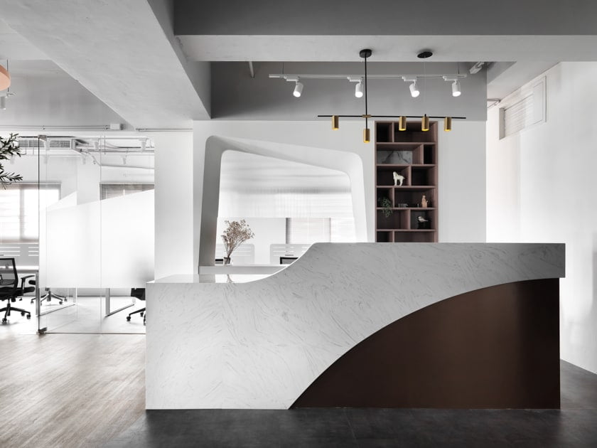 轉而流動的連續形式,搭配橄欖木的友好意境,自由流動且開放的辦公空間。